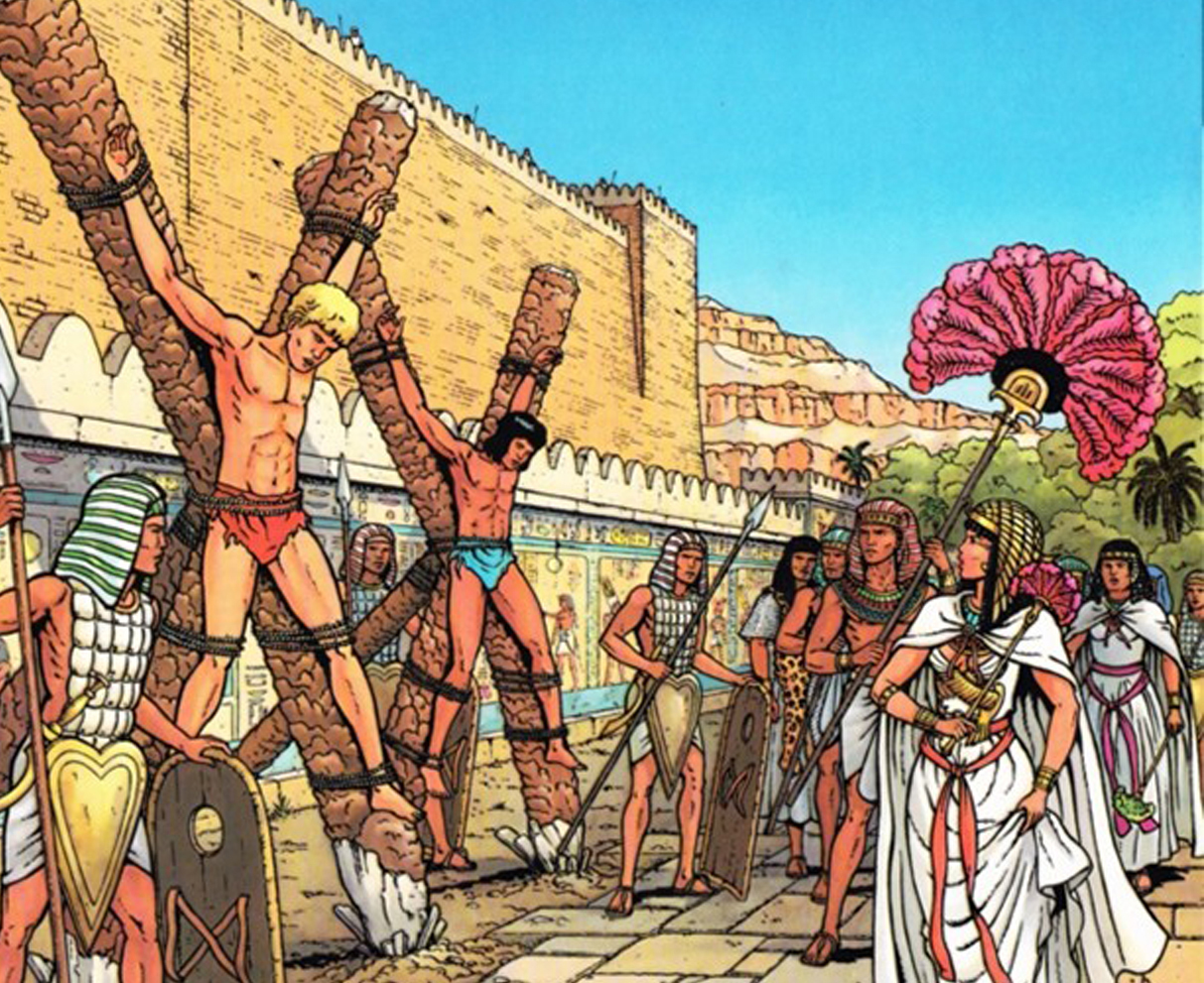 Je ne sais pas. Gilles et Jean avaient déjà chacun leur(s) série(s,) Lefranc, Vasco (et les Voyages sur Rome) et Jhen, ils étaient fort occupés déjà. Jacques me l’a demandé dans la continuité de mon travail sur Ô Alexandrie, qui avait été un très gros succès. Mais peut-être avait-il testé d’autres pistes, je ne sais pas. Ce que je sais, c’est qu’il me considérait en quelque sorte comme sa main, il ne voulait pas pour Alix d‘un auteur confirmé qui aurait trop imprimé sa personnalité sur la série. Il voulait garder le plus grand contrôle possible sur Alix. Or j’étais son plus proche collaborateur à cette époque-là. Un André Juillard par exemple, avec tout son talent, il n’en aurait pas voulu.