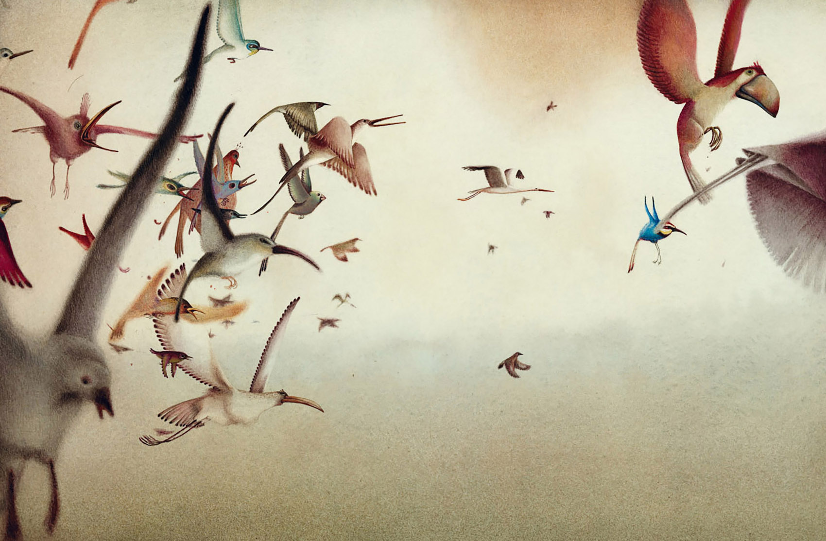 A : Non, parce que l’idée n’était pas d’illustrer Soie dans l’absolu, mais que Rébecca Dautremer illustre Soie. C’était elle ou rien. Nous découvrions le travail de Rebecca à la même époque et la richesse de son approche, rarement redondant avec le texte. Ses cadrages notamment nous fascinaient. Nous pouvions voir combien, dans ses albums, elle s’emparait des textes justement sans les figer. Elle donne sa vision, son regard, dans les creux du texte. Nous avions une foi inébranlable dans le fait qu’elle en ferait quelque chose de fantastique.