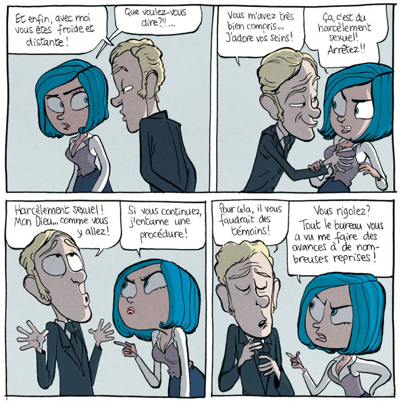 Ah oui. Et puis l’envie, j’en ai toujours beaucoup pour beaucoup de choses différentes. Je consacre aussi du temps à des récits pour adulte, comme Gisèle et Béatrice. Des récits qui ont toujours un fond social. Je travaille sur un nouvel album dans ce registre, pour Dupuis, et que je suis en train de découper. Ça parle de la virilité et ça s’appelle Mou. C’est rempli de blagues, mais ça parle de sexualité.