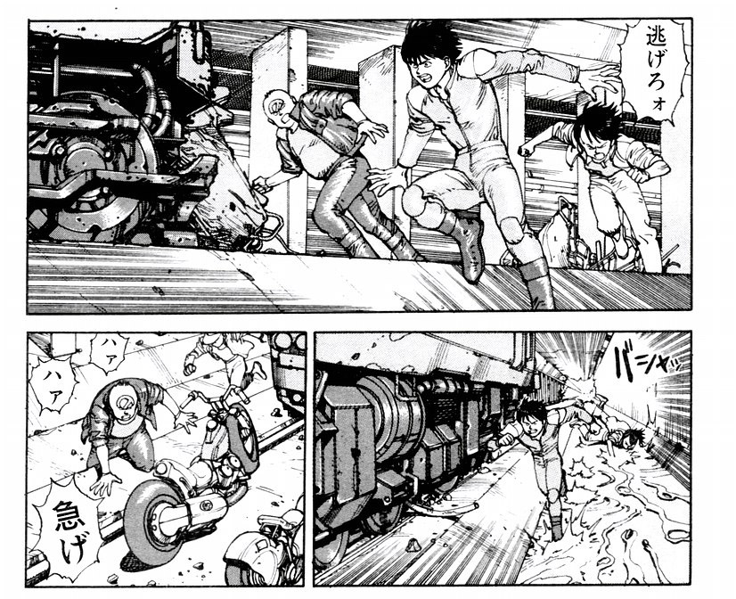 Complètement une éponge, oui. J’étais très fan d’Akira. Les éditions de l’époque sont encore là dans mon atelier. J’étais fasciné par le découpage cinématographique d’Otomo, les effets de flou, les lignes de vitesse. Je me souviens que quand on essayait de reproduire ces procédés à l’école, on nous disait systématiquement « Tu fais comme les japonais ! ». J’avais la culture japonaise dans le sang, par les dessins animés de l’époque Dorothée. Retrouver cet esprit dans de la bande dessinée me plaisait beaucoup. Plus tard, il y a eu la découverte des films de Miyazaki. Le festival d’animation de Bruxelles avait fait une rétrospective : quatre films étaient projetés. Je les ai tous vus. J’ai reconnu parmi eux un film que j’avais vu vers l’âge de quinze ans sur la chaine italienne Rai, qui découpait les longs métrages en plusieurs parties pour en faire des épisodes de 26 minutes. Ces images sont restées gravées dans ma mémoire. C’était donc un choc, au festival de Bruxelles, de recontextualiser ça. C’était Nausicaa. Graphiquement, il y avait là quelque chose de très troublant, pour quelqu’un d’habitué à la tradition franco-belge. C’était étonnant dans tous les aspects, jusqu’aux créations de personnages, comme ces bonshommes avec de grosses moustaches.
