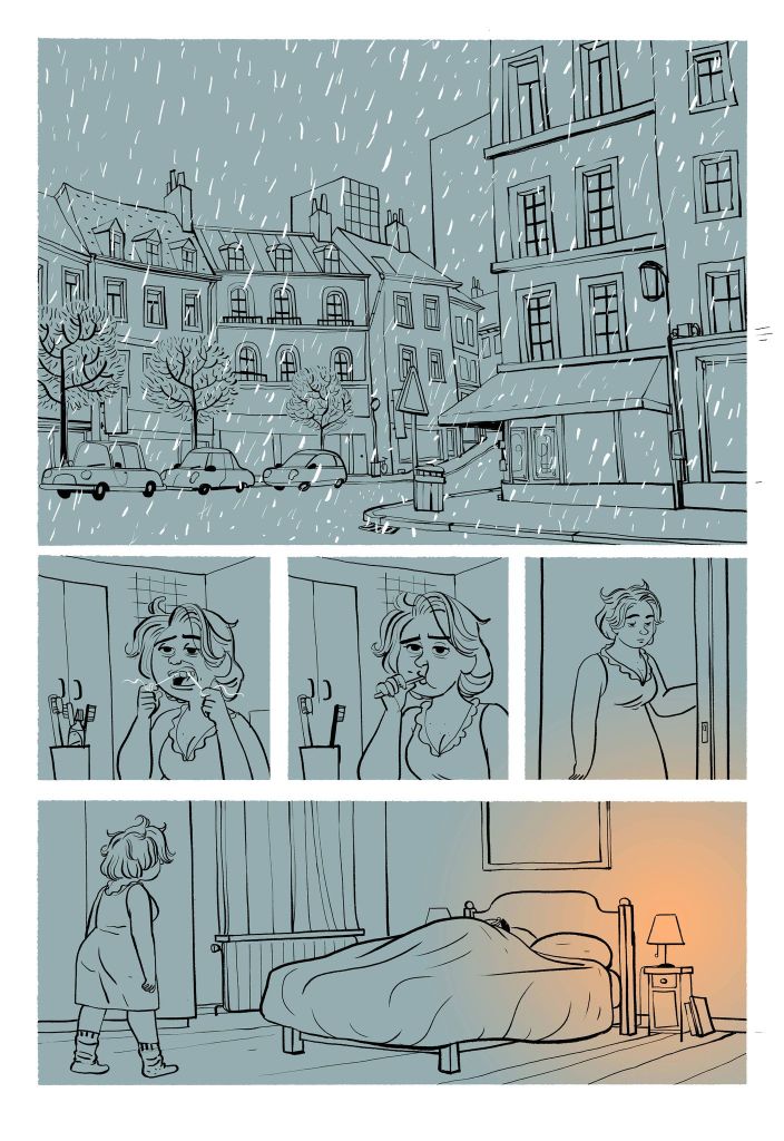 J’ai toujours voulu raconter des histoires d’amour où l’acte d’amour est représenté. C’est une volonté depuis le moment où j’ai compris que ces choses-là ne se passent pas comme dans les films. Je voulais montrer ça. La pornographie est abjecte. J’ai alors entendu une émission dans laquelle une sociologue québécoise encourageait les artistes à s’emparer de la pornographie et de la représentation des corps, et de montrer ça à leur manière. J’ai alors commencé un long processus pour trouver des histoires d’amours dans lesquels je peux mettre en scène la sexualité d’une manière qui n’est pas sordide, qui est tolérable. J’ai grandi dans une maison catholique, ouverte mais avec des interdits très forts. Je suis toujours un peu le fruit de mon éducation. Ce registre prend en tous cas de plus en plus de place dans mon travail. J’ai un blog consacré à cela sur Instagram. Ça permet de rencontrer des gens, et je me rends compte que c’est un univers globalement très bienveillant. J’ai beaucoup parlé notamment à Maïa Mazaurette. Elle arrive à parler de tout ça avec humour. Si j’arrive à faire ce qu’elle fait en bande dessinée, je serais heureux. Elle a toujours ce petit sourire qui fait que tout ce qui pourrait paraître autrement choquant devient naturel, normal, drôle. Ce qui n’empêche pas qu’elle continue à choquer pas mal de gens. Mais elle fait bouger les lignes. Elle a préfacé mon premier livre pour adultes.